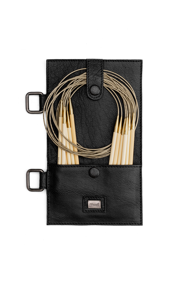 Этот красивый кожаный чехол сочетает в себе стиль и практичность. Carita A имеет карманы не только для спиц, но и для мелких аксессуаров для вязания, таких как маркеры петель. Чехол крепится к сумке Carita с помощью двух металлических колец.