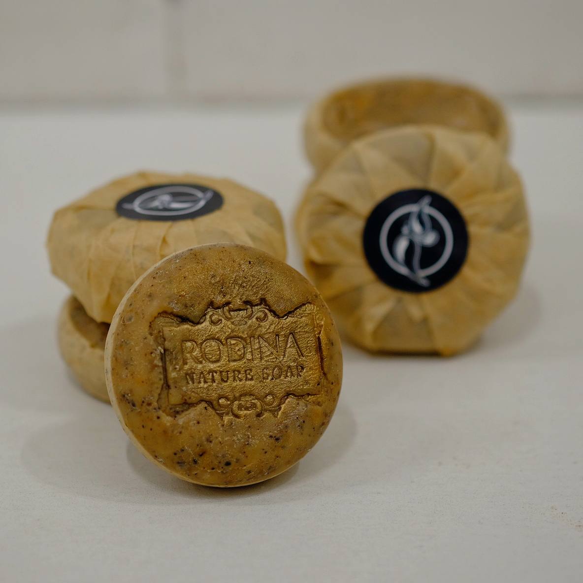 Скрабирующее, бодрящее мыло с тёплым древесным аккордом и ароматом кофе