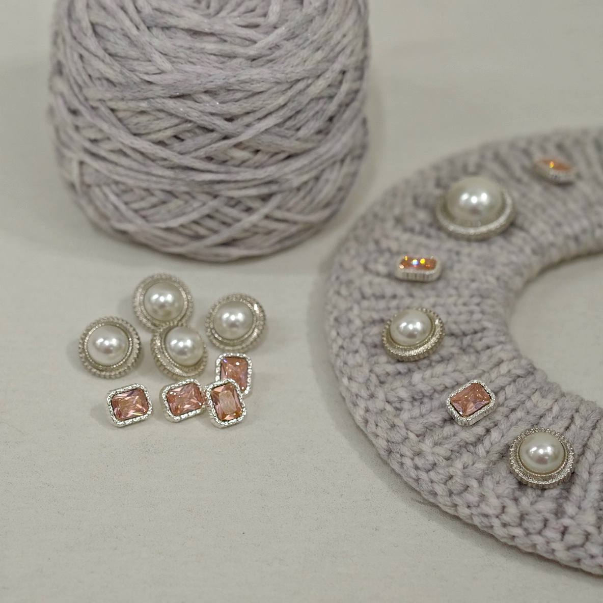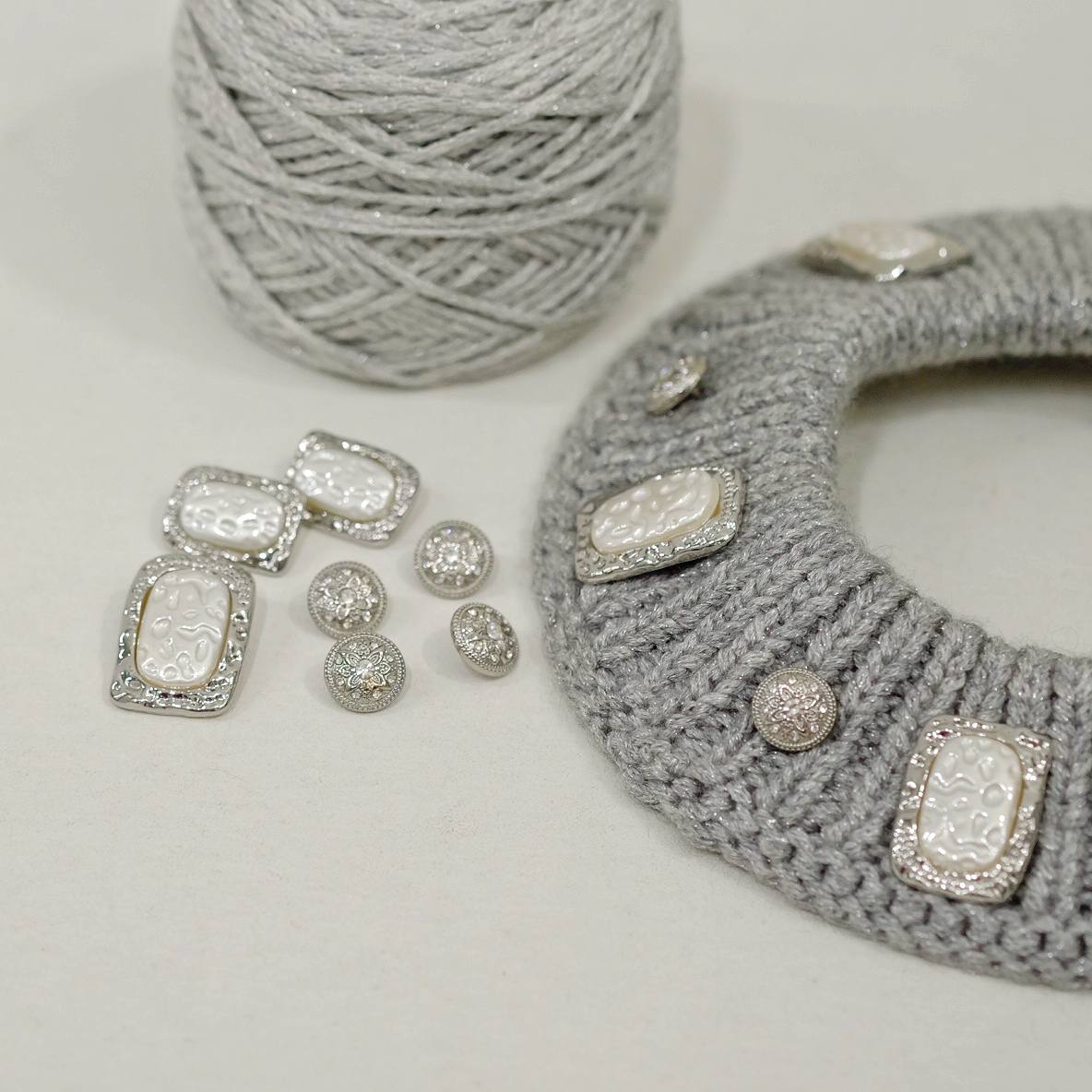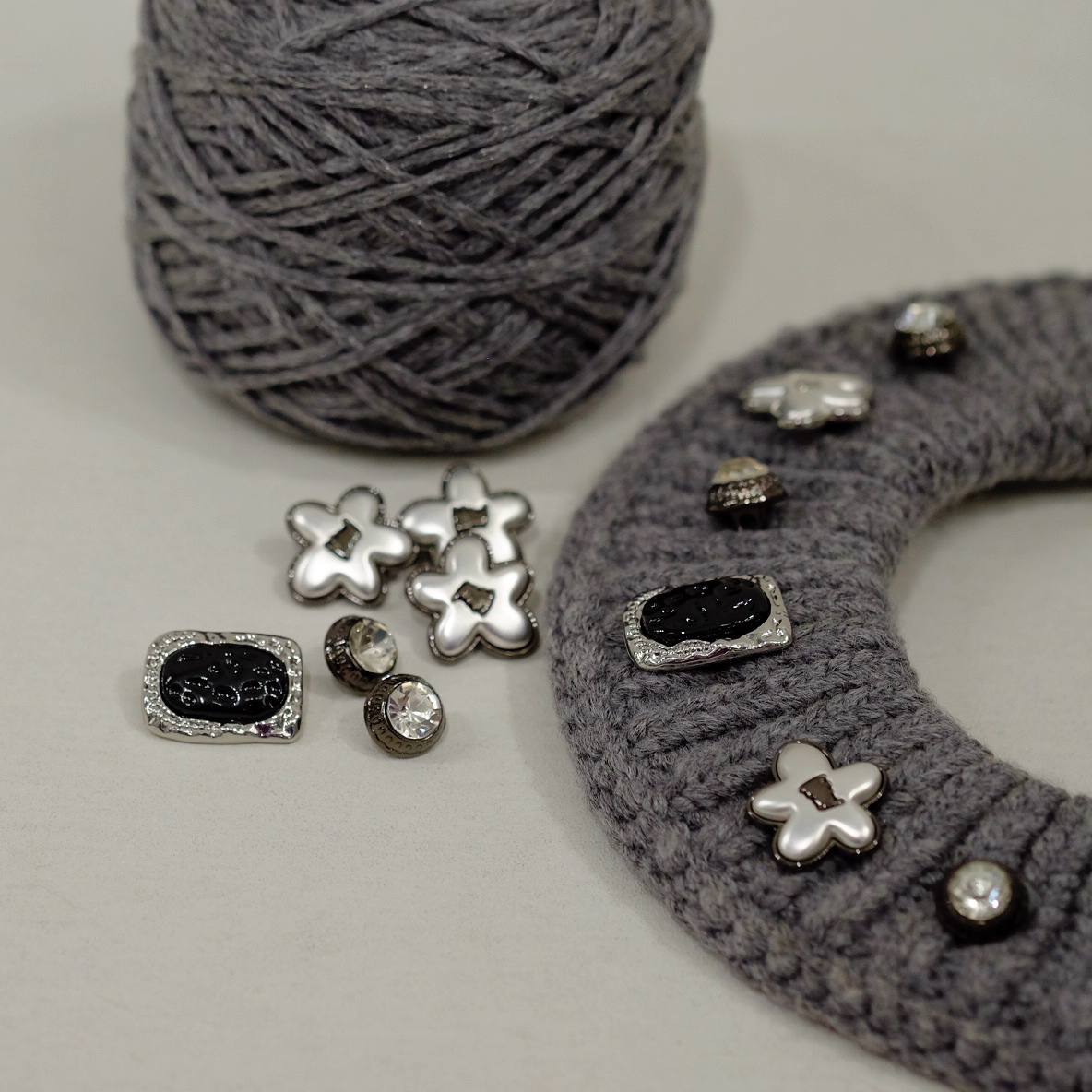 В набор входит: 50 грамм пряжи, пуговицы, напечатанная инструкция по вязанию ожерелья.