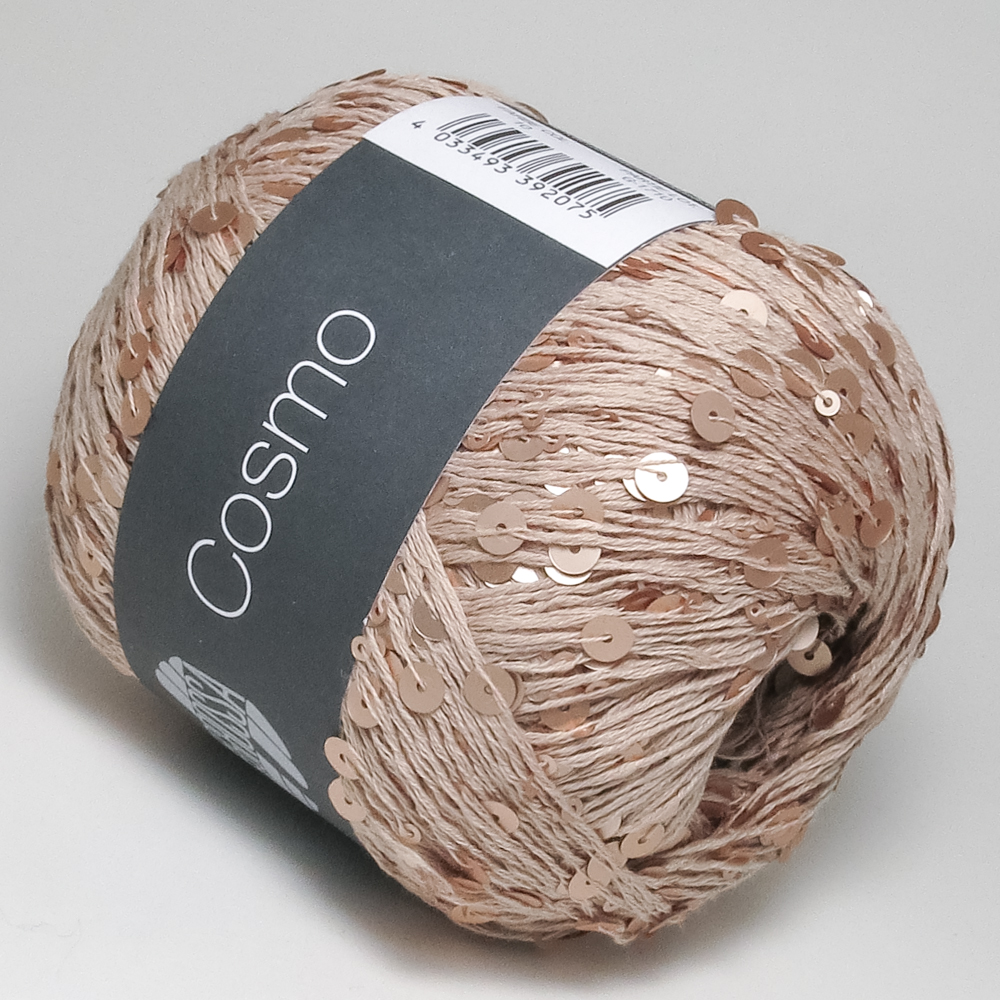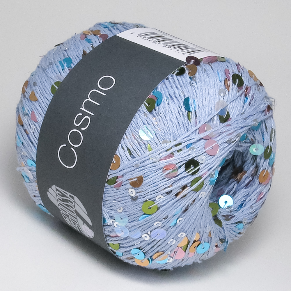 Крупные и мелкие пайетки, доступные в разноцветных или однотонных цветах, в сочетании с хлопковой основой: эта пряжа придаёт объёмным вязаным изделиям космическое сияние.