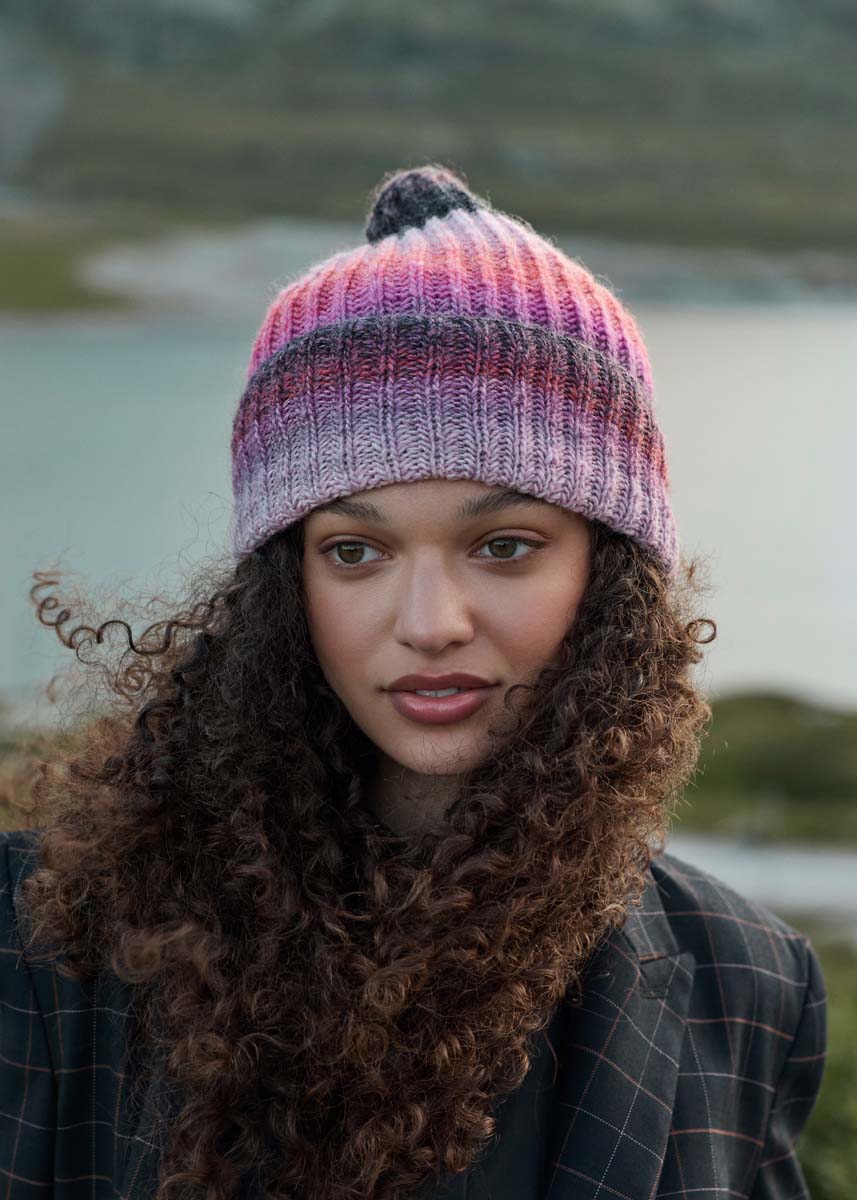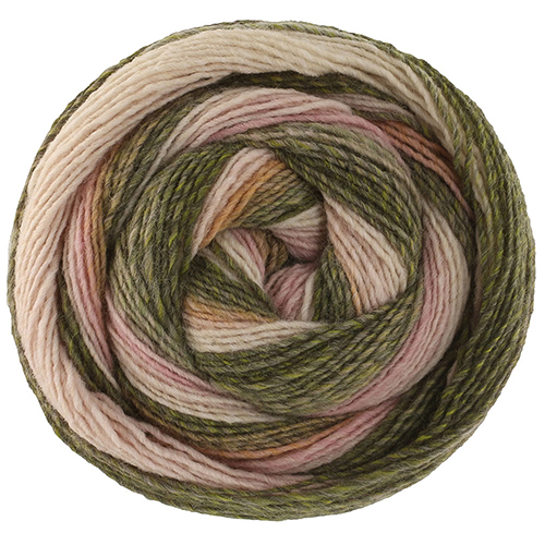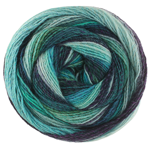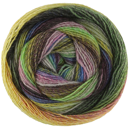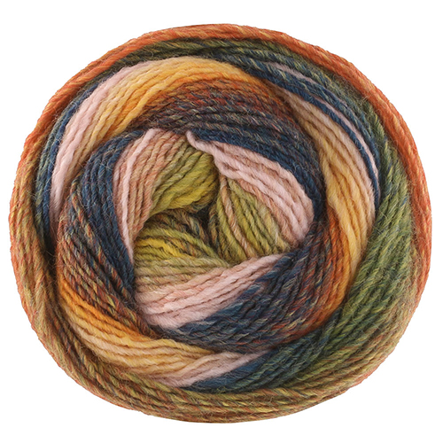 Ровничная пряжа с равномерным цветовым градиентом в широких полосах.