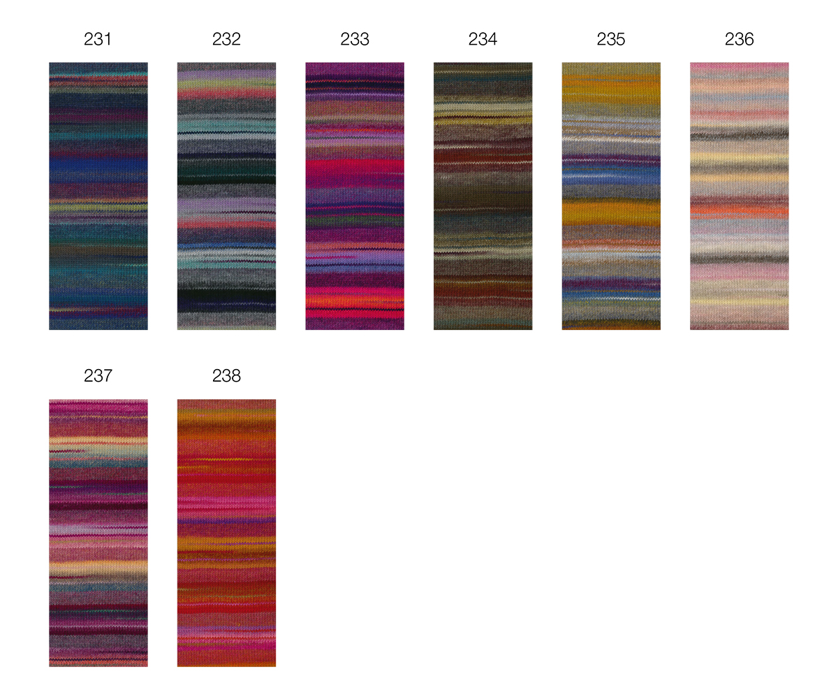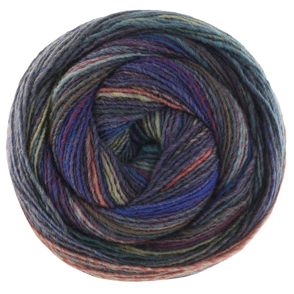 Lana Grossa Gomitolo Intenso радует яркими цветовыми переходами и мягкой, объёмной текстурой. Каждый моток создаёт уникальную игру цветов, которая особенно эффектно смотрится в шарфах, шалях и пончо.