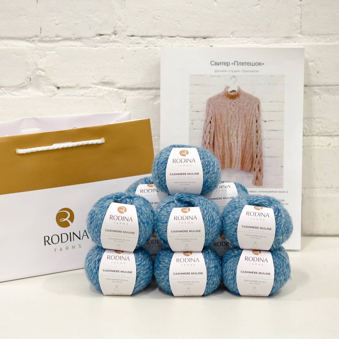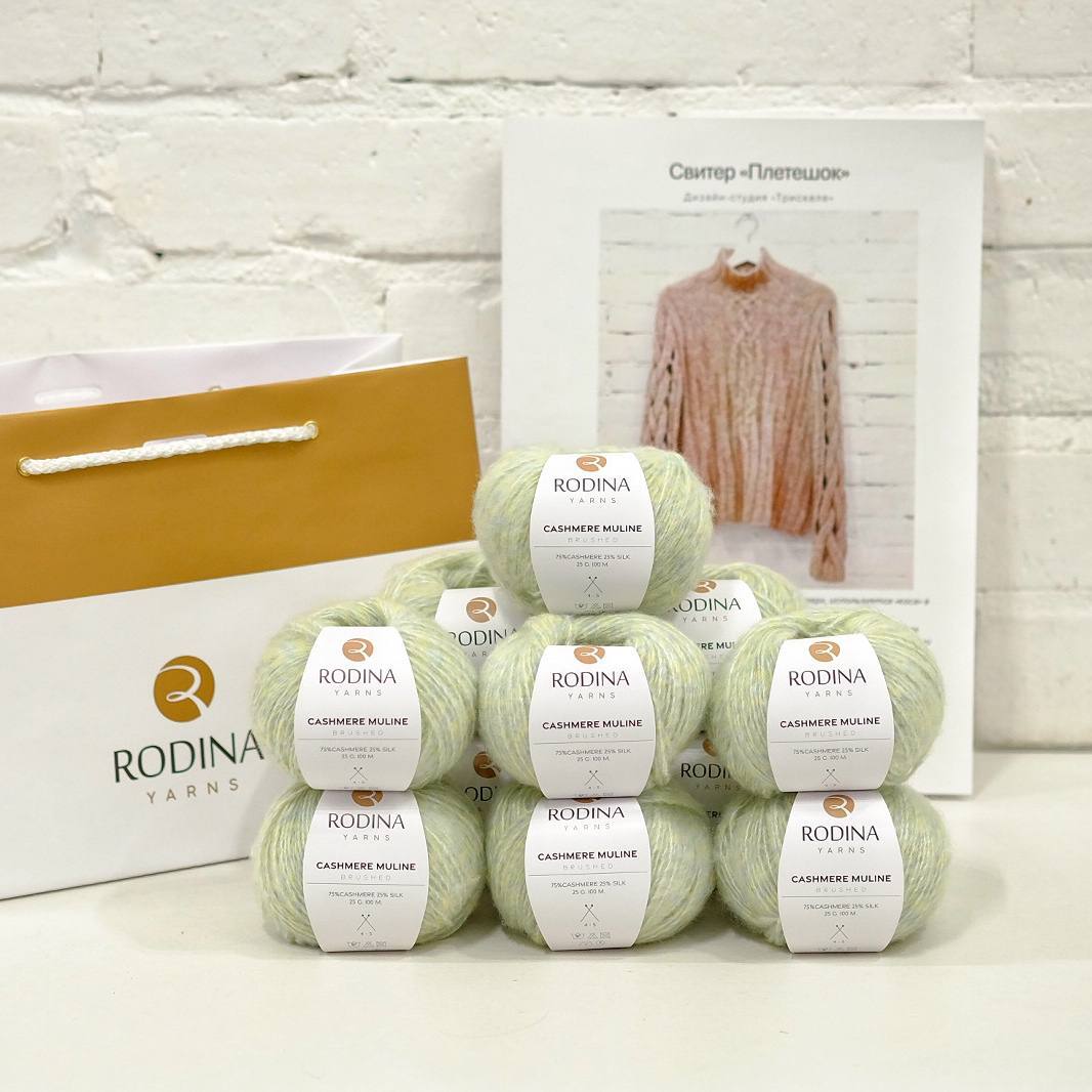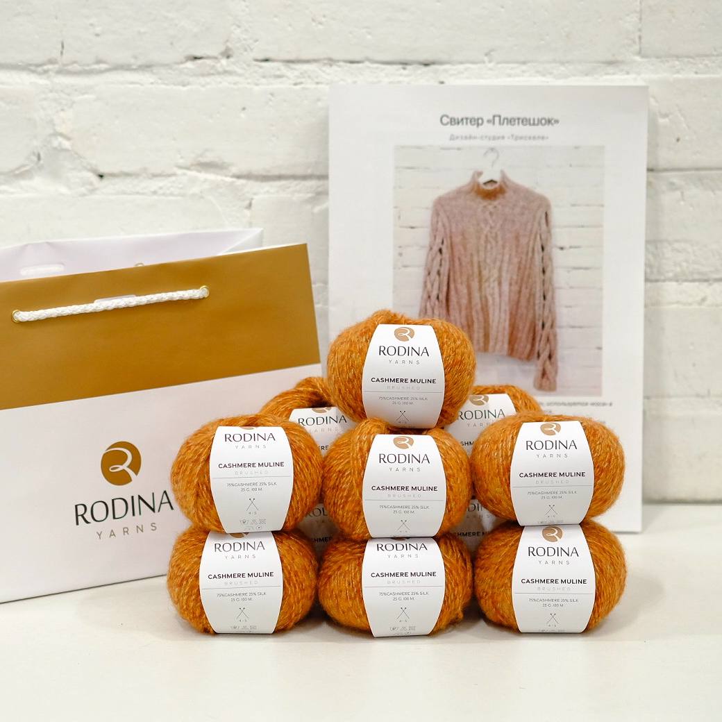 - Пряжа CASHMERE MULINE Rodina Yarns (75% кашемир, 25% шелк; 100 м / 25 г) - 11 мотков.