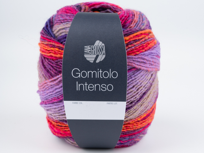 Lana Grossa Gomitolo Intenso радует яркими цветовыми переходами и мягкой, объёмной текстурой. Каждый моток создаёт уникальную игру цветов, которая особенно эффектно смотрится в шарфах, шалях и пончо.