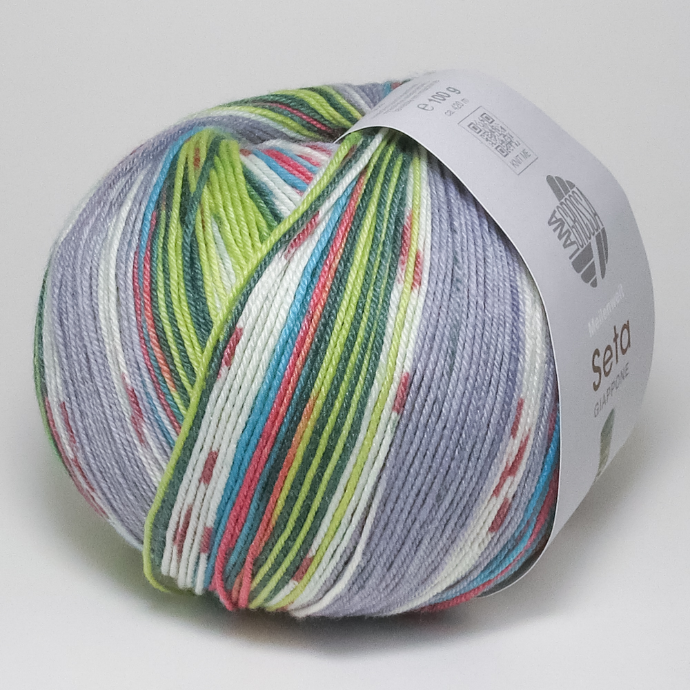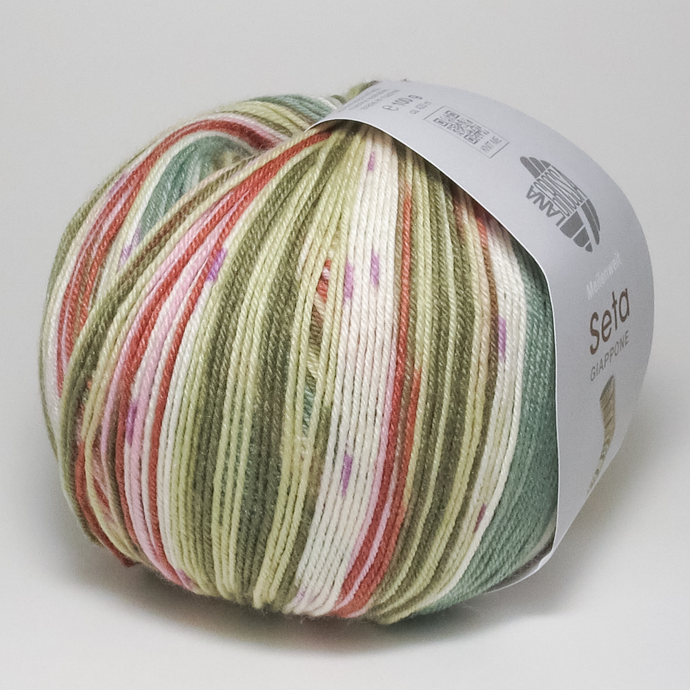 Lana Grossa Meilenweit 100 Seta Giappone сочетает благородный шёлк с мягкой шерстью — для роскошных ощущений при вязании. Эта высококачественная носочная пряжа отличается изысканным блеском, приятной лёгкостью и утончёнными цветовыми переходами.