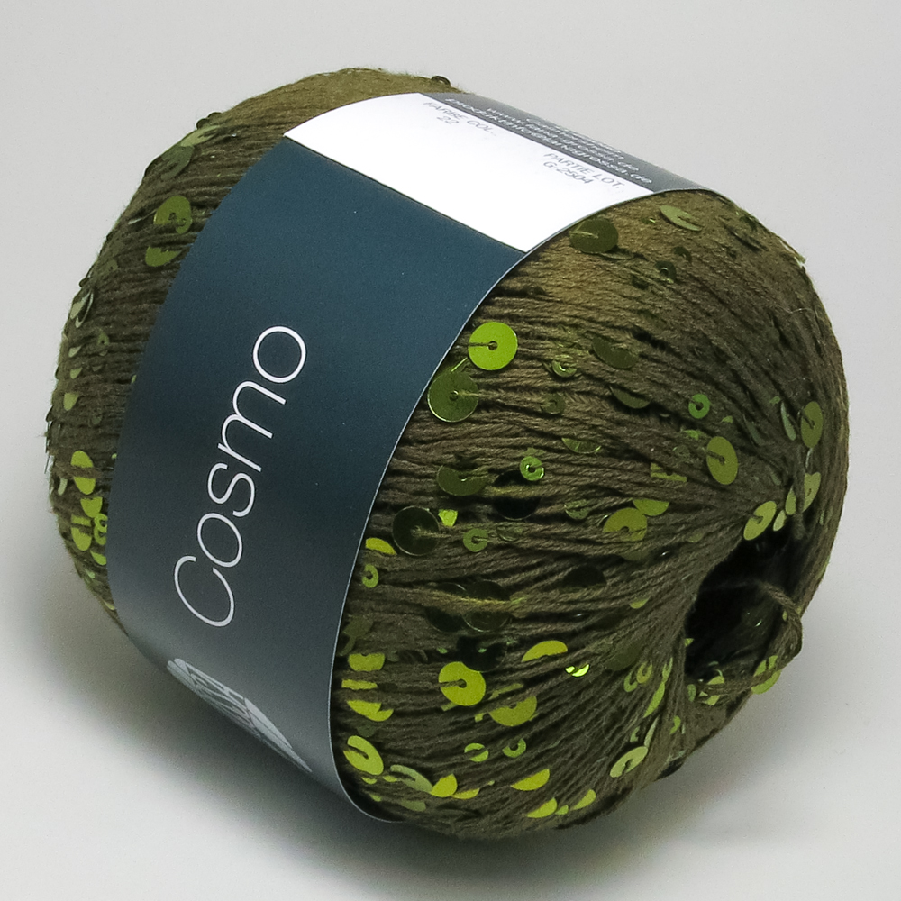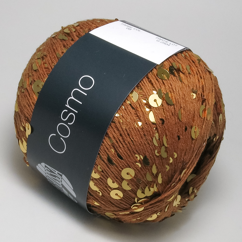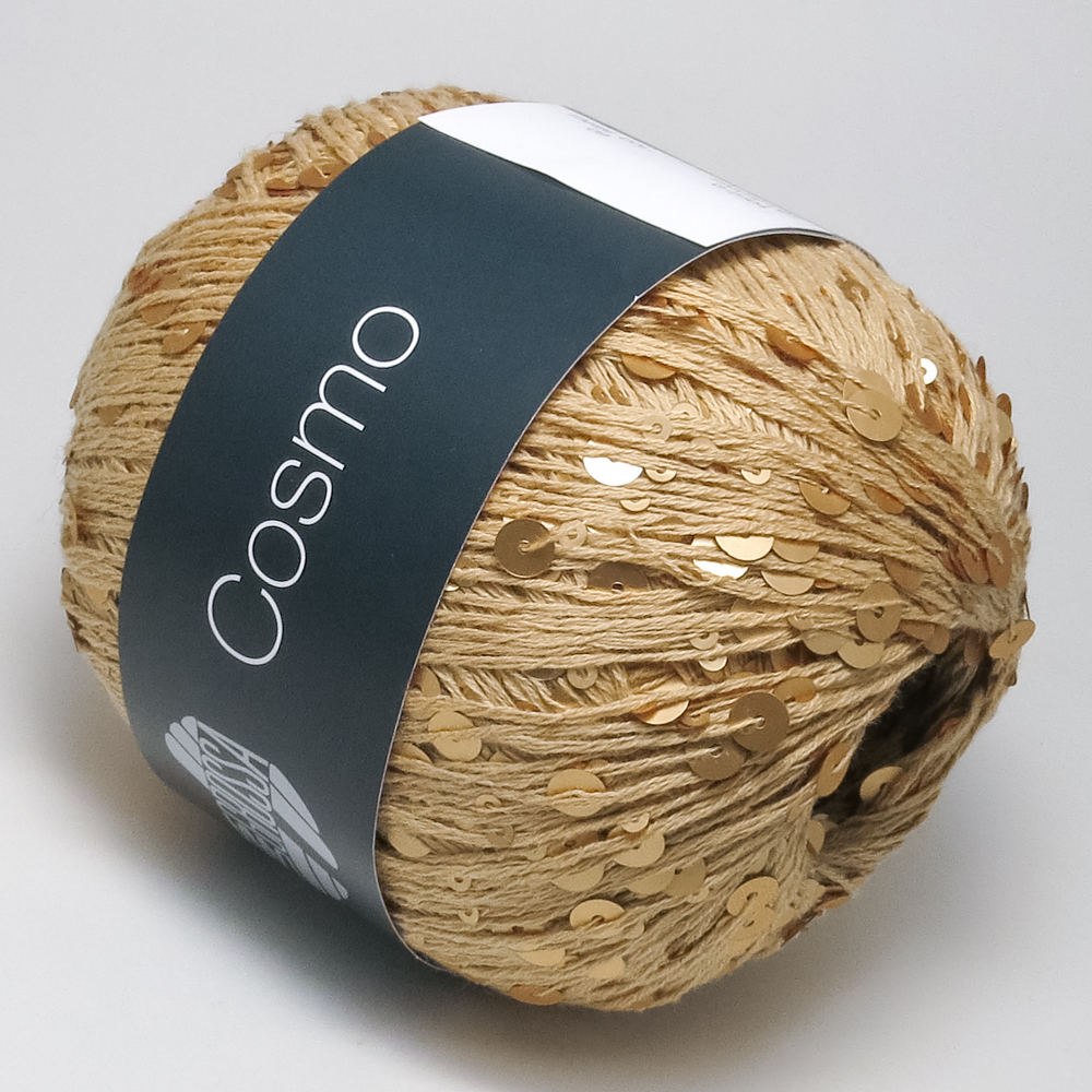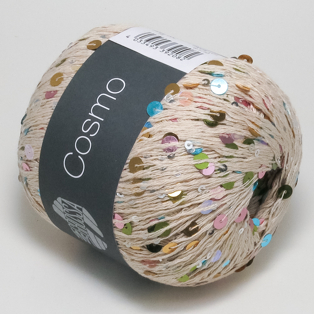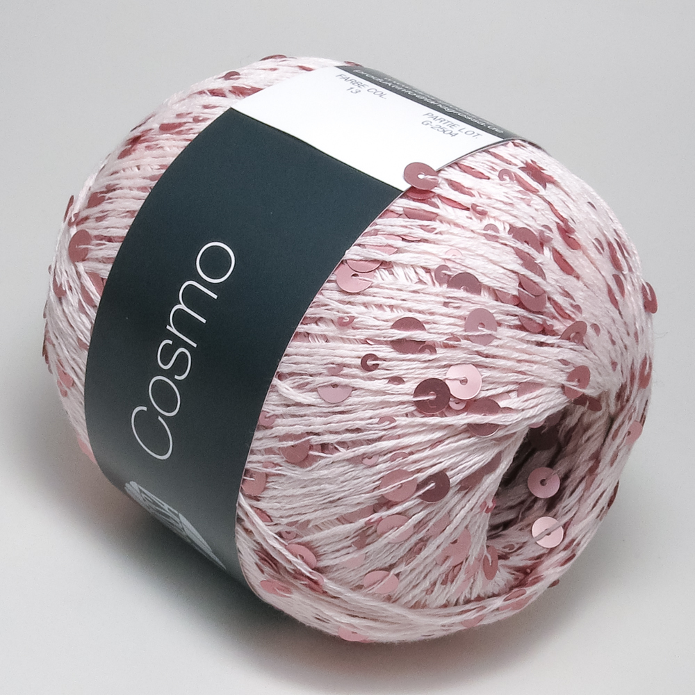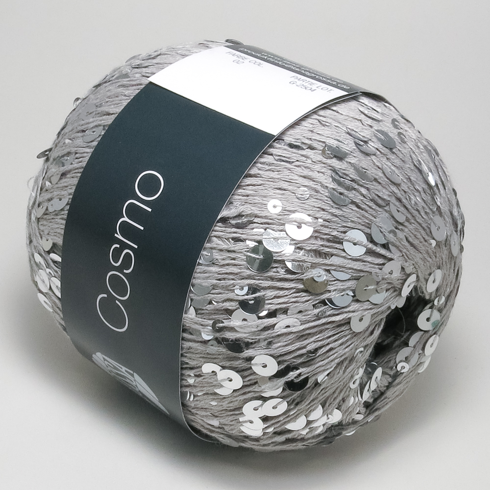 Крупные и мелкие пайетки, доступные в разноцветных или однотонных цветах, в сочетании с хлопковой основой: эта пряжа придаёт объёмным вязаным изделиям космическое сияние.