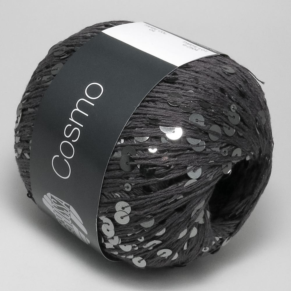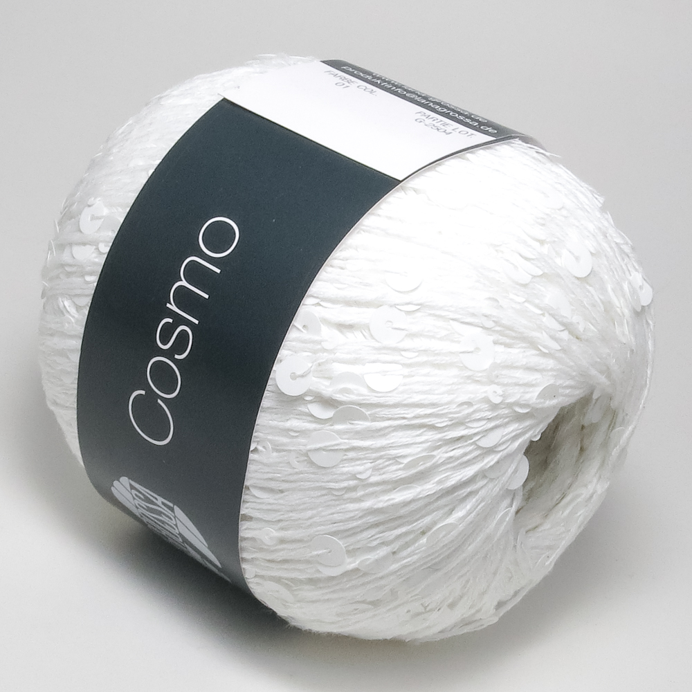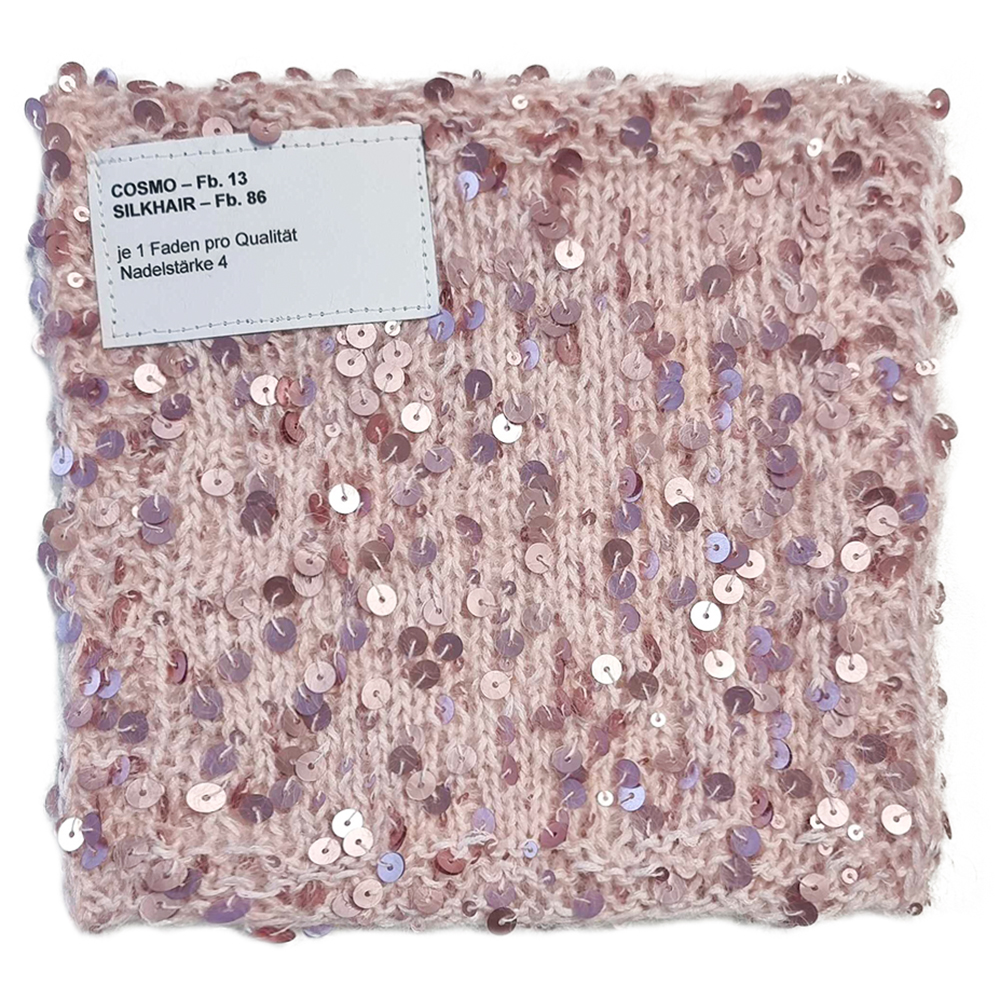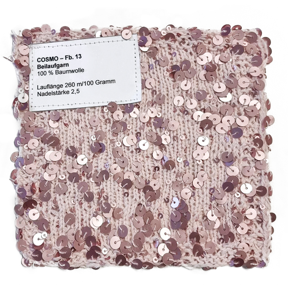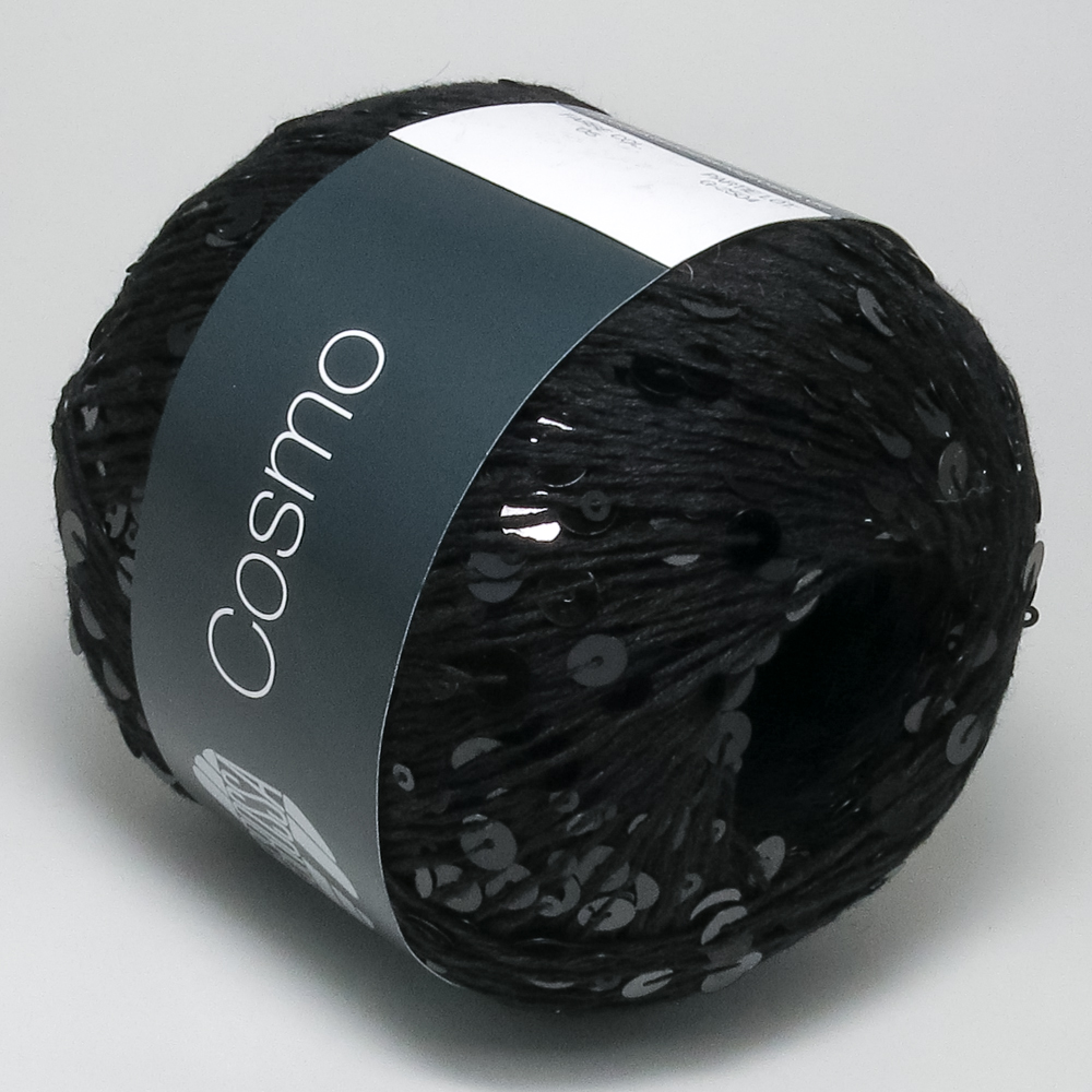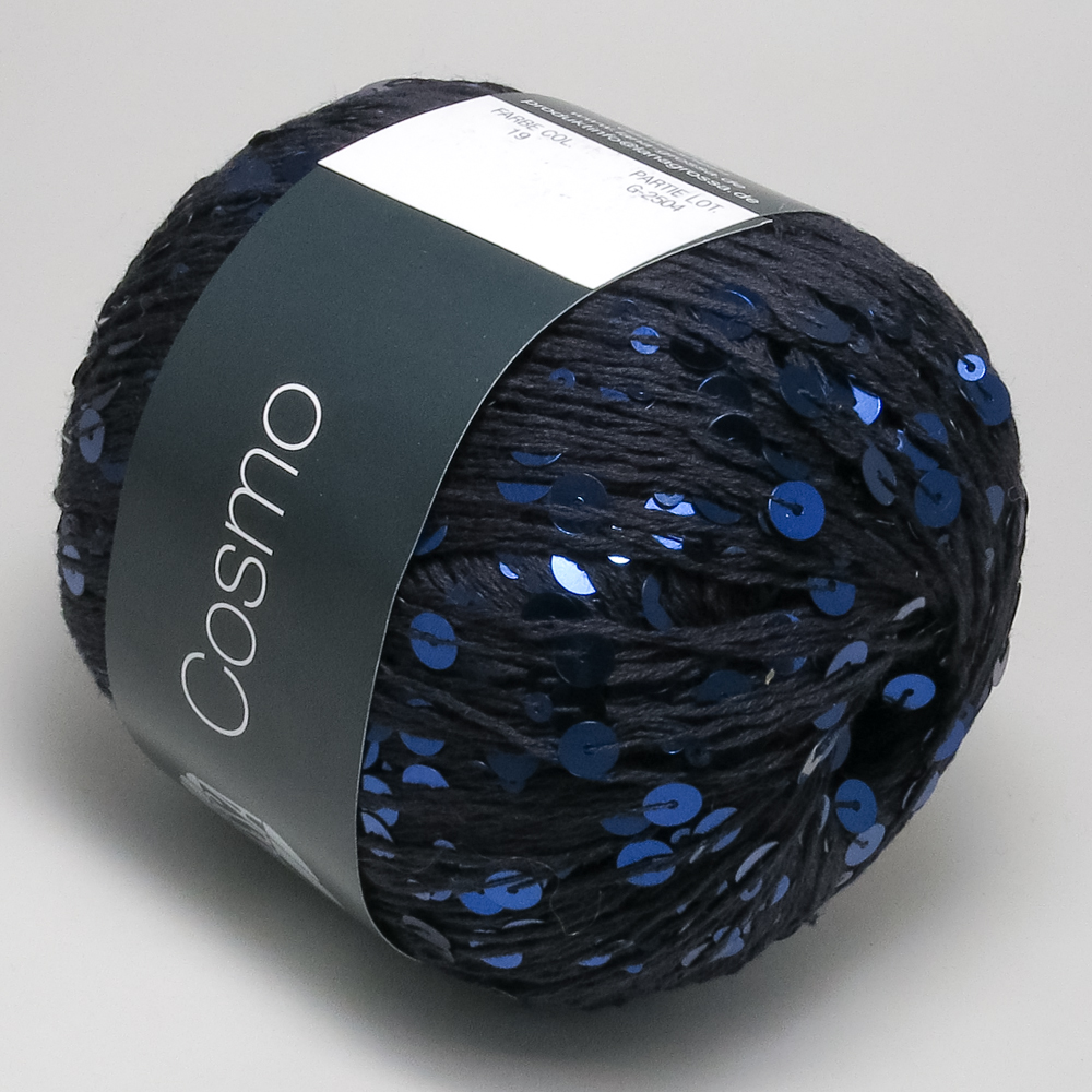 Крупные и мелкие пайетки, доступные в разноцветных или однотонных цветах, в сочетании с хлопковой основой: эта пряжа придаёт объёмным вязаным изделиям космическое сияние.