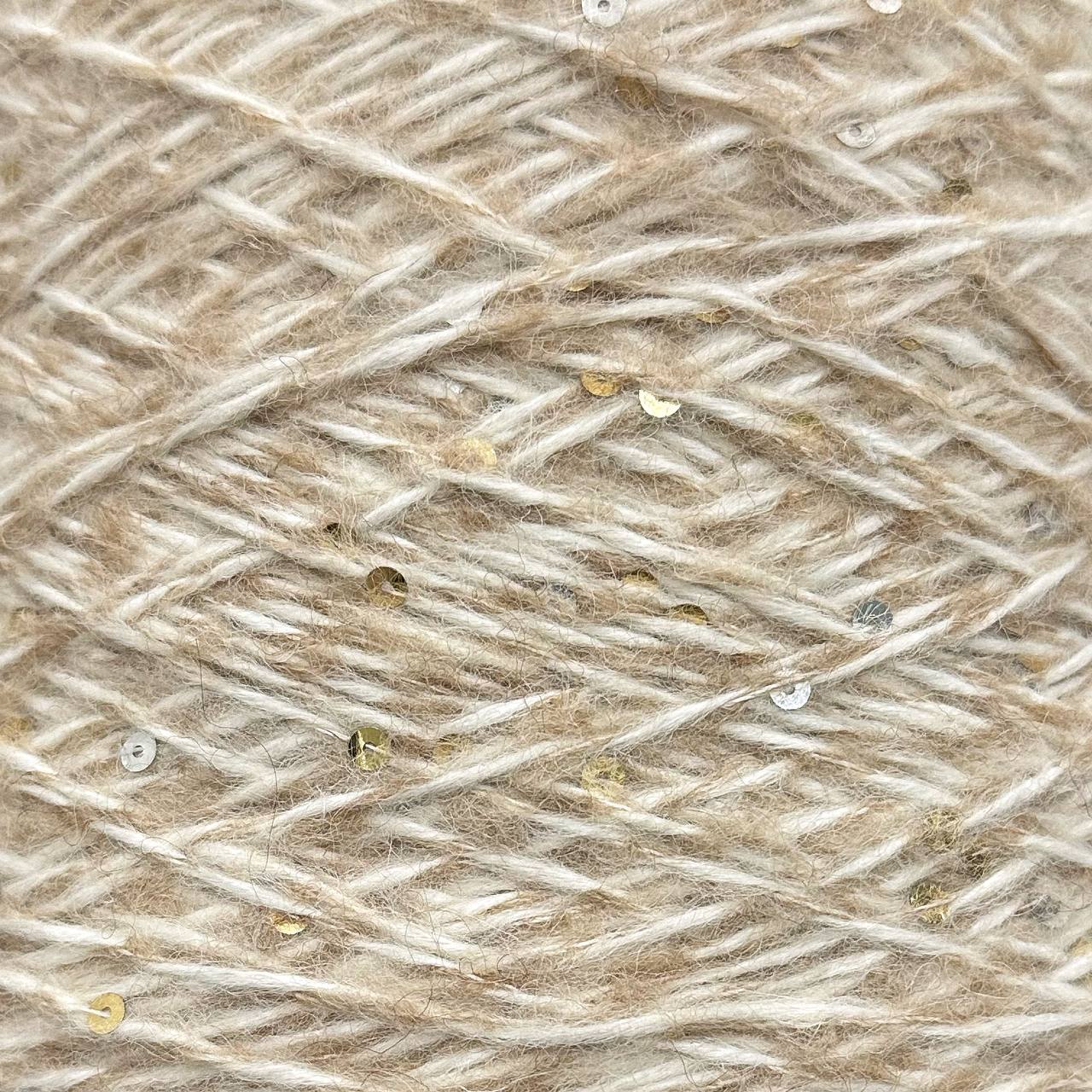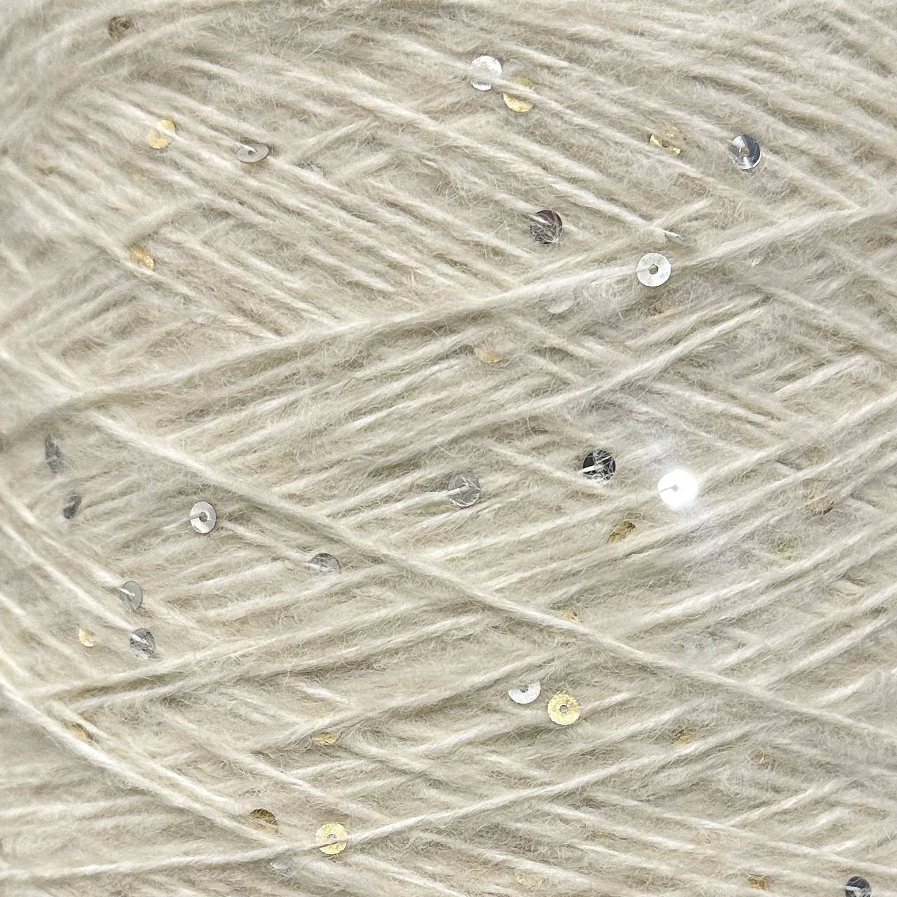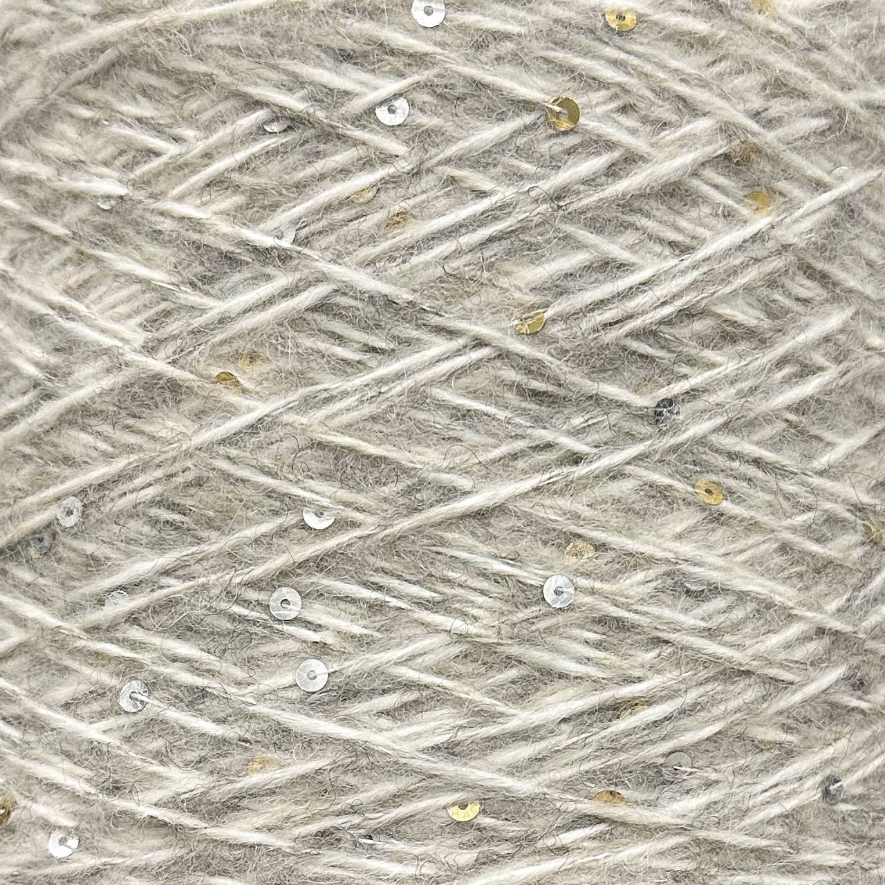 Мулине из неокрашенной альпаки superfine и двухцветных пайеток. Цвета альпаки получаются путём отбора шерсти перуанской альпаки различных оттенков без какой-либо обработки, кроме стирки. Полиэстер, используемый для скрепления волокон, полностью переработан из использованных пластиковых бутылок.