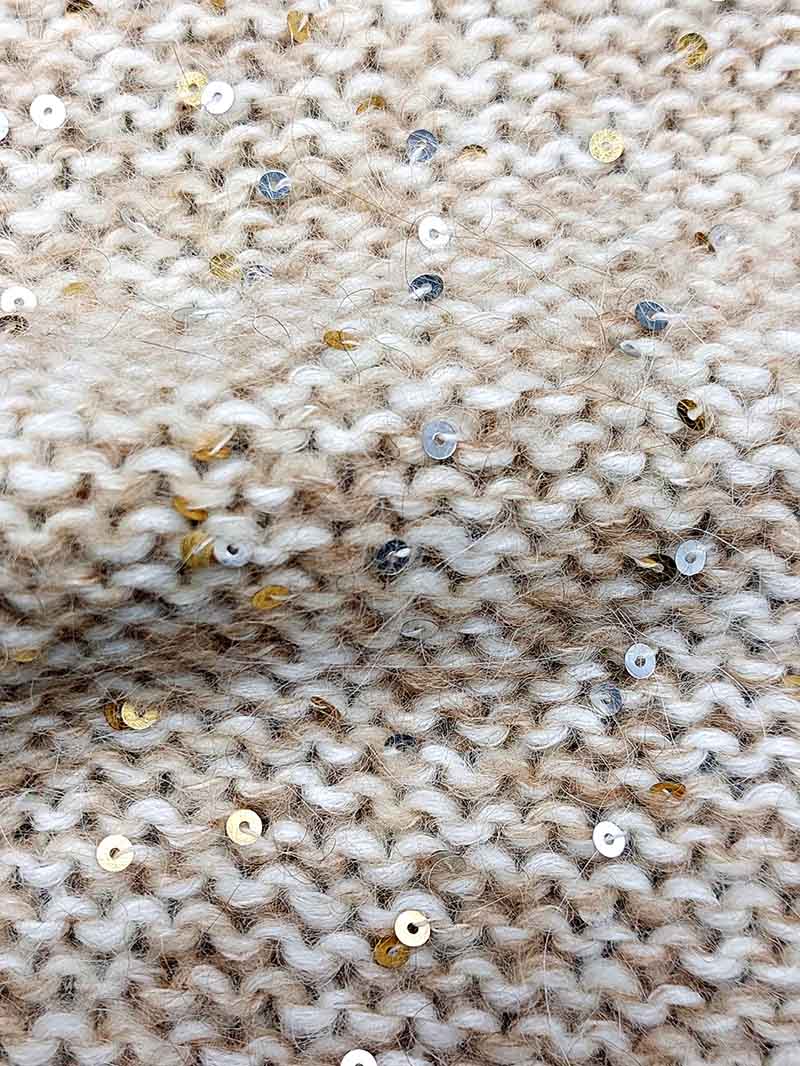 60% альпака суперфайн, 38% восстановленный полиэстер, 2% полиамид (5% пайетки)